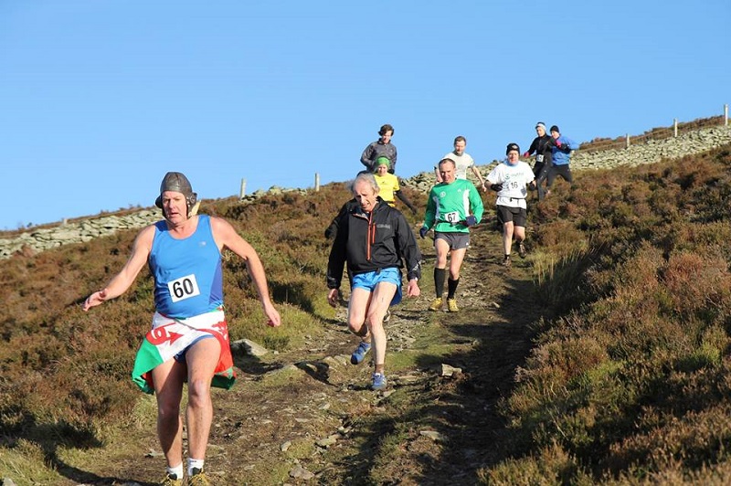 Wonderful day for a gallop downhill. Meiryonnyd's Ifan Richards was around a minute quicker than last year but still fell short of the men's record - however he obviously thoroughly enjoys this race. Helen Fines came over from Yorkshire and knocked over a minute off the ladies record with a fabulous exhibition of gallopment. Very pleased to see good support from local clubs Denbigh Harriers and Prestatyn RC plus the incredible emergent team of Femmes Fatales from Ruthin (with one honorary Hommes Fatale!) Rich Davies and Rob Butler posed as Biggles and Robin Hood and a good time was had by all - thanks to my sturdy team of timekeepers!