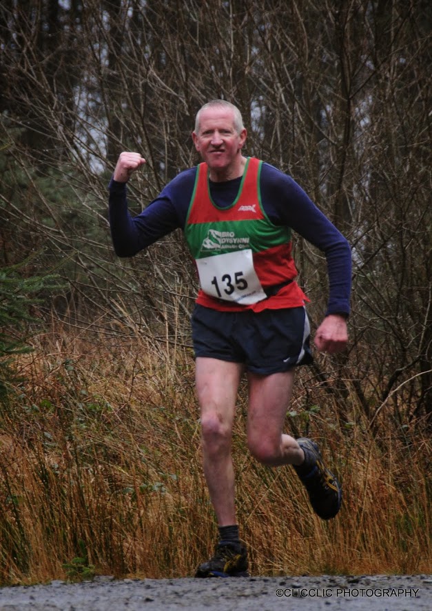This alternative route was slightly shorter but made up in being a slightly faster race. We still had most of the really muddy section on the way down to contend with and luckily, as we were in the lee of the hill, the wind didn't hinder and the rain/sleet/hail held off for most of the race............Arfon Hughes