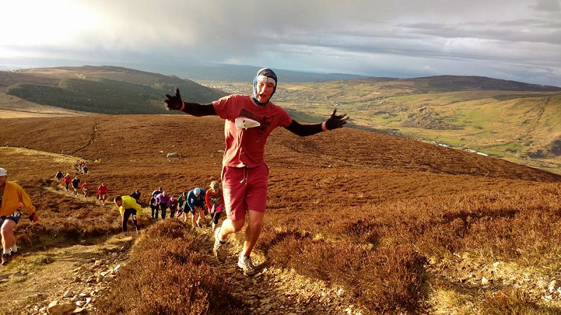 Gareth Hughes running for Mercia set a blistering pace from the off by leading the runners through the thick mud out of the fields of Moelyci farm and on towards the pot-holed tarmac and grassy lanes towards the energy-zapping boggy ascent to the summit, and those close on his heels in the early stages changed position now and again. Sarah Ridgeway of Run Snowdonia led the ladies from the start and never lost grip of this lead.