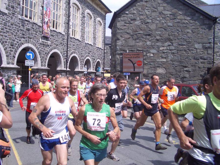 rainbow of vests lining up near the Druid Inn to test their legs and lungs against the hills of north Wales. A golden